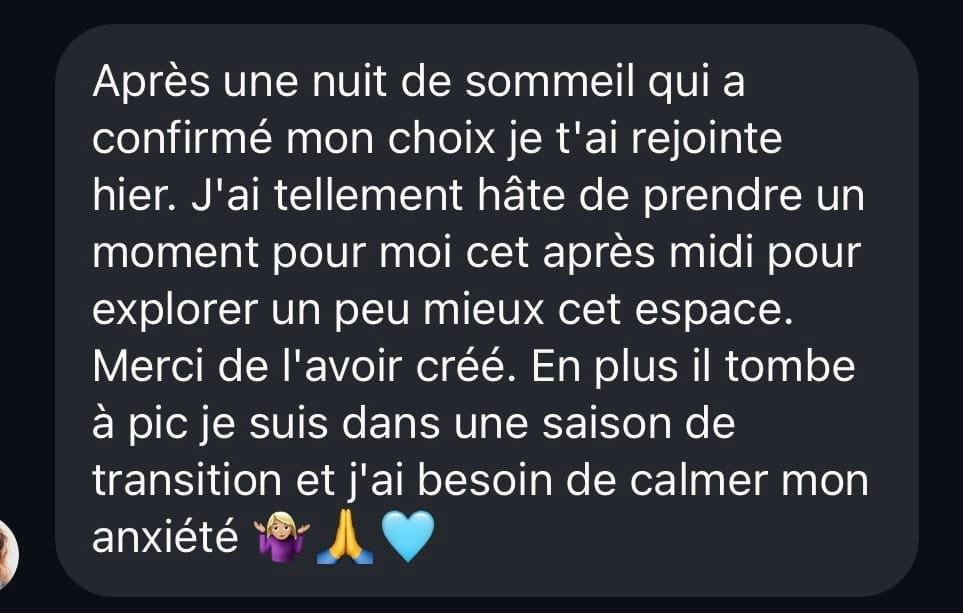 Parce que cet espace communautaire réunit tout ce que j’aurais rêvé de rejoindre à l’époque où j’étais plongée dans une grande souffrance, sans aide efficace ni concrète.
