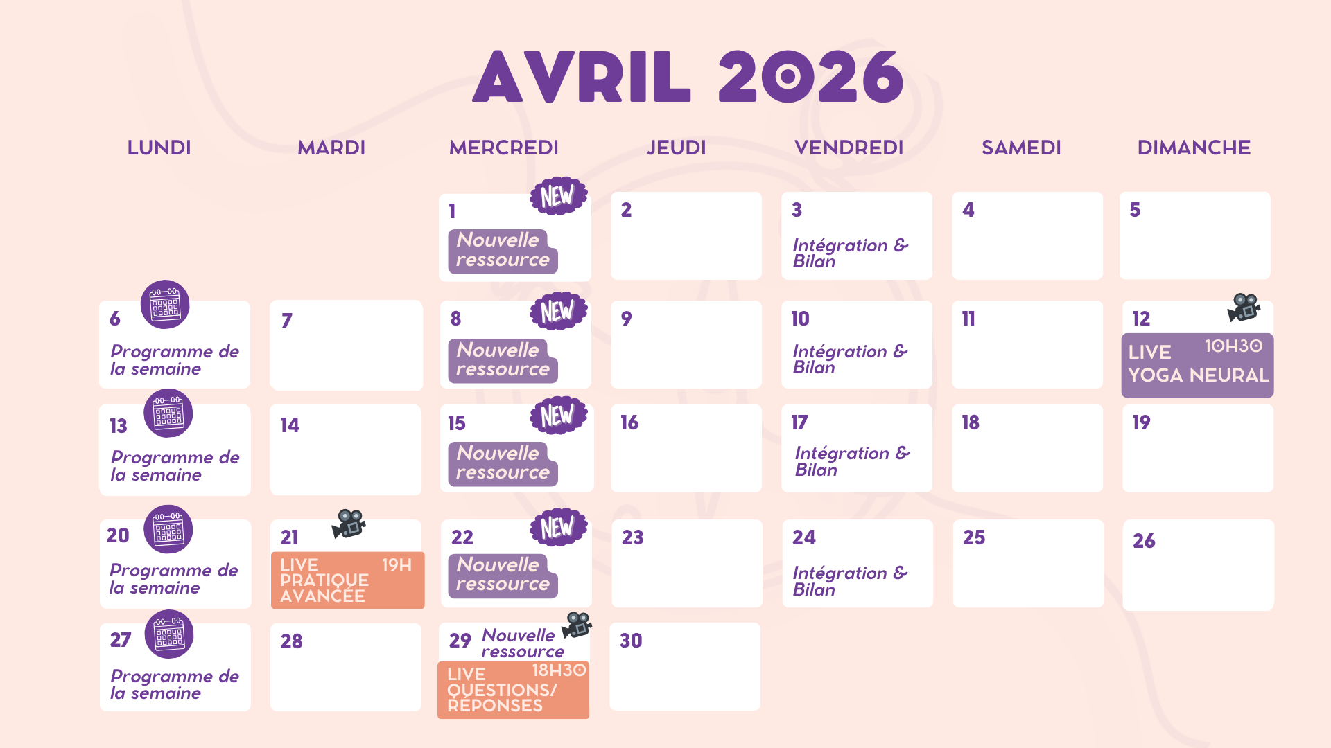 1 ressource régulatrice inédite postée chaque semaine (format routine video, guidance audio ou exercice écrit)